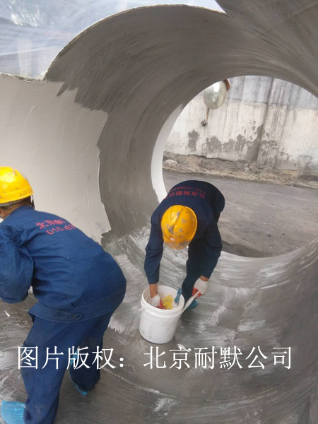 圖(2)北京耐默公司在安裝現場對爐膛內壁進行施工預保護,其耐溫性能可以達到1000度